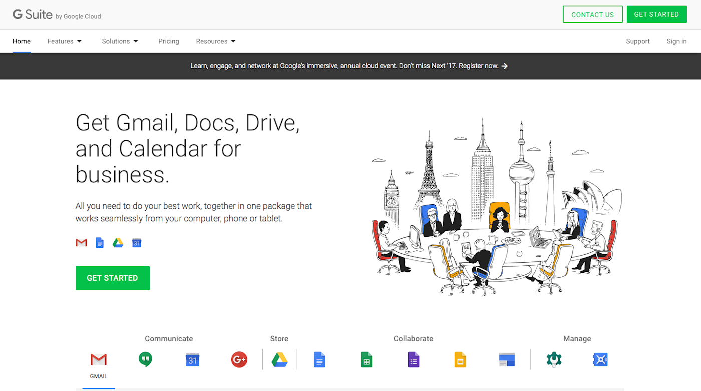 Previously called Google Apps for Business, M Suite is the business version of everything Google offers.